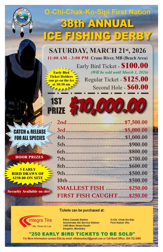 The 38th annual O-Chi-Chak-Ko-Sipi First Nation Fishing Derby is happening on March 21st, 2026! Find more information by clicking here!