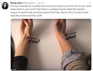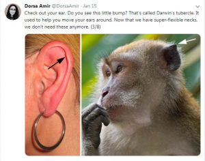 Dorsa Amir is an evolutionary biologist, who recently posted a series of tweets about the human body and evolution. It all began with this one: “Did you know the human body is full of evolutionary leftovers that no longer serve a purpose? These are called vestigial structures and they’re fascinating.”